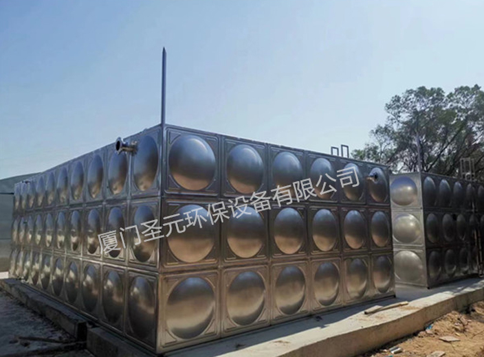 不锈钢生活水箱是按照不锈钢水箱的用途而细分的一种水箱,按照国家的相关标准,不锈钢生活水箱必须采用SUS304不锈钢板,也就是人们常称的“食用级不锈钢板”,这种钢板含镍量较高,具有较高的抗锈蚀性,用这种钢板制作的水箱一般情况下寿命都在二十年以上,并且能达到国家饮用水的卫生标准要求。
