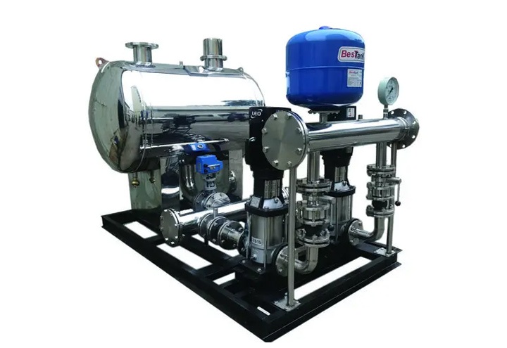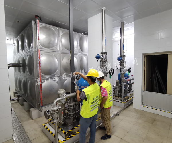 无负压给水设备由气压罐、水泵及电控系统三部分组成,其突出产品的特色是,不需建造水塔,赞助小、占地少,布置灵活,建成投产快。采用水气自动调节、自动运转、节能与自来水自动并网,停电后仍可供水,调试后不需看管。广泛用于企事业单位、住宅区及农村的生产、生活、办公供水。适用于供水户在5000户以内,日供水量在3000 m³以内场所,供水高度达100米以上。